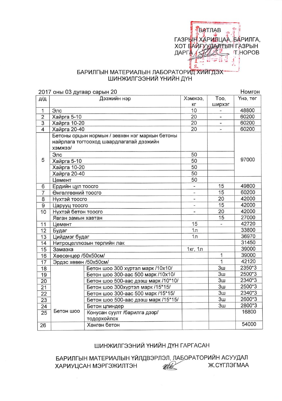 Барилгын материалын сорилт шинжилгээний лаборатори